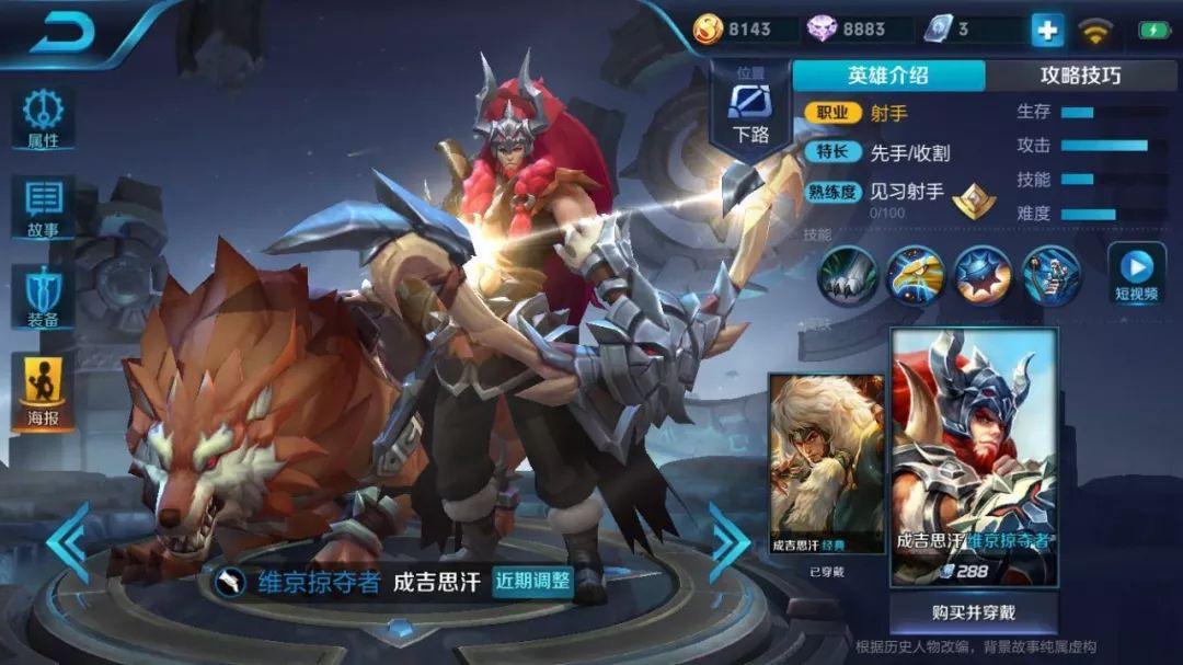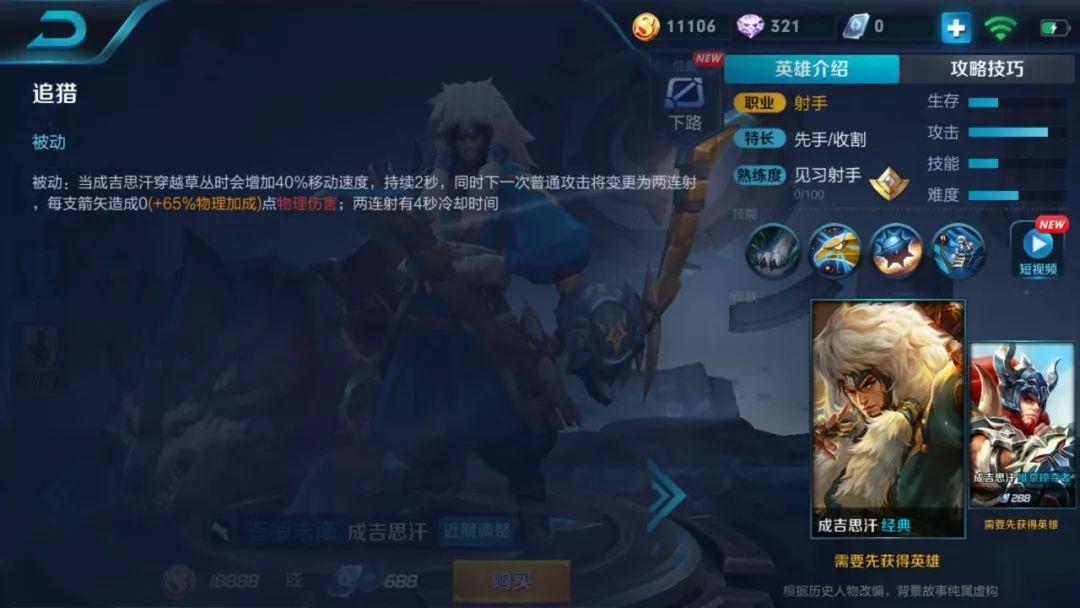 穿越草丛时能够增加移速并且提升攻击,这使得二哈成为酷爱钻草丛的射手,相对于其他射手,成吉思汗在野区显得更为游刃有余。
