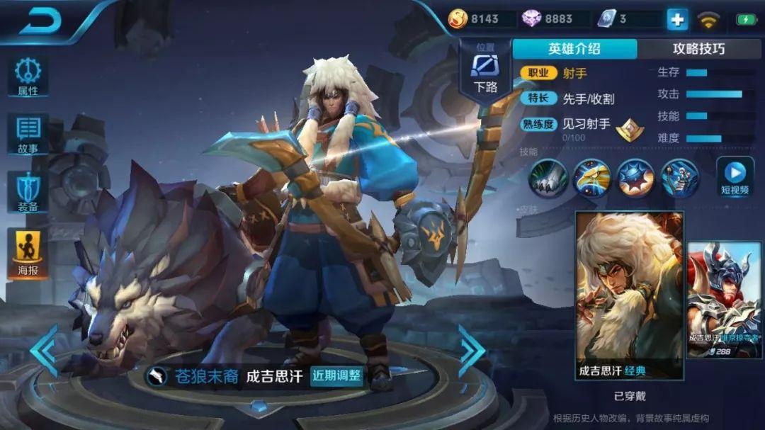 成吉思汗是峡谷中一度非常热门的射手,但是后来随着孙尚香、马可波罗等等英雄的崛起,一代天骄也只能默默的坐上了冷板凳。