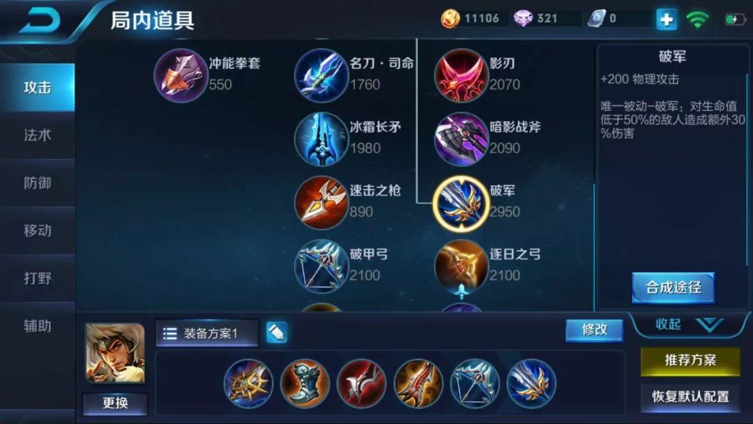 破军比较贵,放到最后出,让成吉思汗有着高额的物理输出,对敌人造成致命的伤害。