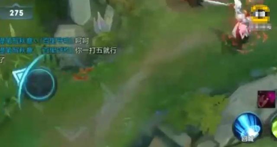 然后李白回到了泉水里面,没想到对面的五个玩家齐心协力一起进攻,最后泉水的回复速度跟不上李白的受伤速度,然后李白就在泉水里面牺牲了。