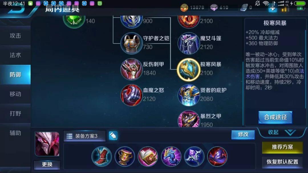 首推极寒风暴,这件装备的性价比不俗,提供了20%的冷却缩减,并且在受到伤害大于当前生命值的10%时,会降低攻击者30%的攻击速度。