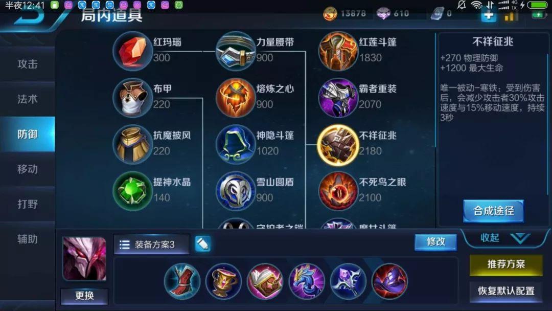 第二个就是不祥之兆,受到攻击即可降低攻击者百分之30的攻击速度,并且提供了1200点生命值加成,这件装备我个人觉得是坦克打黄忠性价比最高的装备。