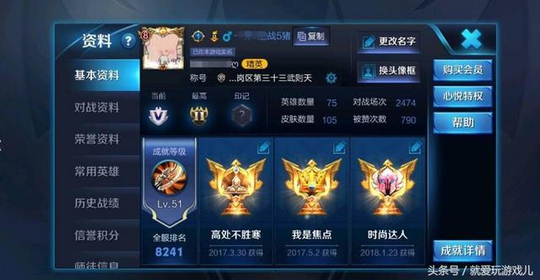 成就之类的东西,这个玩家也是拿得比较多的,所以说这样看来,这位玩家的游戏技术还可以,按理来说,上个王者应该是没有问题的。