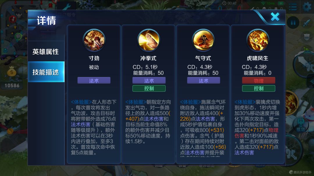 解读:每次平A都会恢复能量值,从这里可以看出,他和不知火舞的机制类似,每次5点,5次就是25点,相当可观!笔者是在6神装的状态下测试的,从这里可以看出,使用攻击加攻速的装备,法伤特别的低!