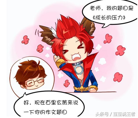 百里玄策别看平时考试基本上都是靠作弊和修改试卷糊弄哥哥的,可是不可否认其还是很聪明的只是不用到正途,老师刚说完小玄策就大胆举手说出了自己的作文题目,诸葛亮老师一听露出了表扬的眼神。