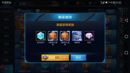 新年伊始,王者荣耀出了大批活动,除了主打的2套狗年限定皮肤外,今日更上线了庄周的云端筑梦师皮肤,可谓疯狂吸金。点券夺宝也限时降价为45积分一次、200积分5次。某玩家这次仅花费20点券居然中了诸葛亮。