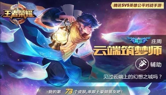 王者荣耀手游在今天上线了一款全新的皮肤,该皮肤方一加入正式服,就迅速的上了微博热搜。没错,小编说的就是庄周的云端筑梦师。