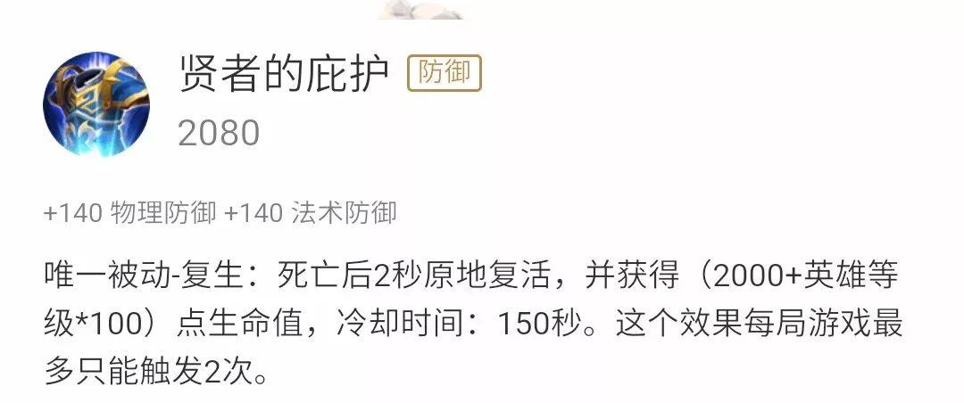 由于吕布的定位是战士,此套出装虽然可以让吕布拥有较强的防御能力,但比起职业定位为坦克的英雄们还是稍逊一筹。因此,当经济足够时应当将抵抗之靴换成贤者的庇护来提升自身的生存能力,复活后的第二条命也为战场上带来更多的可能性。