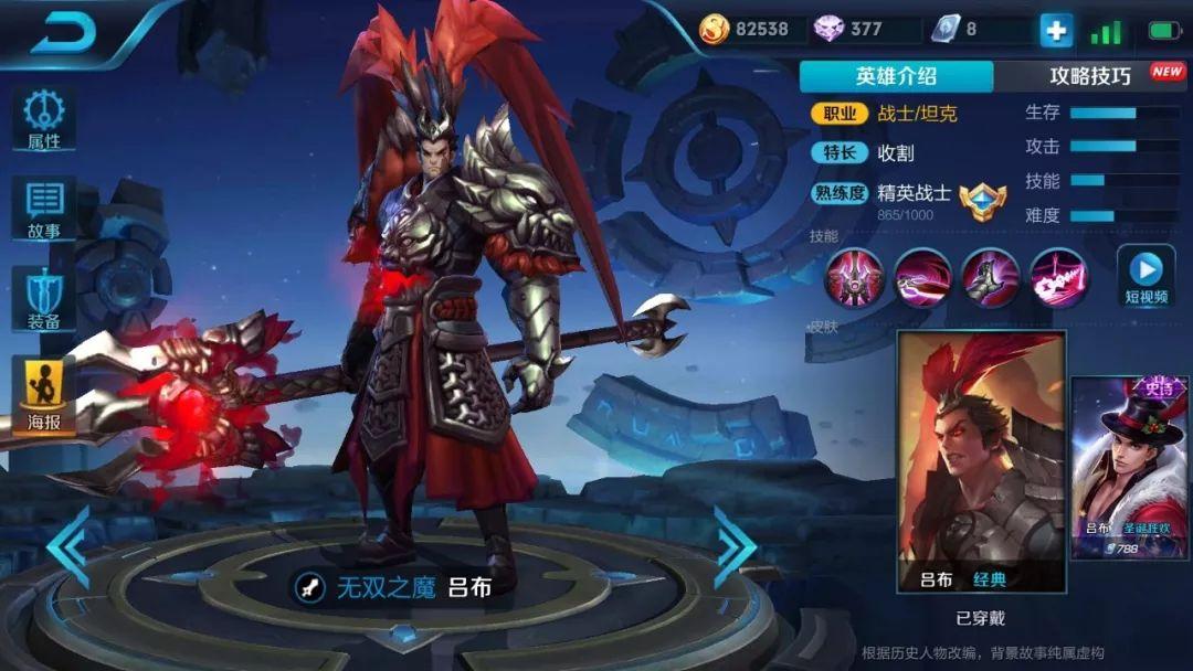 现版本的吕布定位为战士,通常以上单位抗压为主,一技能击中敌人后附魔的真实伤害使其在与敌人对战时拥有无视护甲和抗性的强大能力,无论是面对敌方输出位还是辅助时都有着一定的优势。