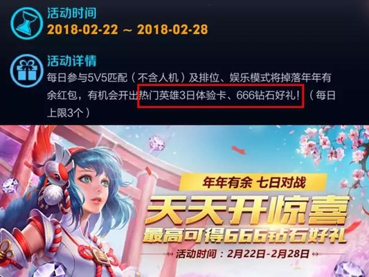 今日王者荣耀还推出了全新的福利活动,活动规则很简单参与实战,即有机会获得“年年有余红包”,每日最多获得3个红包,活动持续7天,每个红包最多开出666钻石,也就是一共有21次抽取666钻石的机会。活动听起来很不错,不过小伙伴们应该也清楚王者荣耀想抽到高钻石超级难,甚至有小伙伴调侃说:新活动开启,每天必得30钻石!