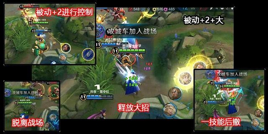 这是橘右京最常用的消耗方式,通过被动的远程减速限制敌人走位,这样能确保做到二技能的精准命中,在眩晕控制目标后接大招输出,此时如果是以消耗为主,那么假设敌人想上前反打便可以利用一技能与之拉开距离后撤,待技能好了之后再上前打一套,而如果敌人残血可收割的话则可以直接一技能近身击杀,而如果大招过后敌人交出位移的话也可利用闪现来追击,因为被动的冷却只有五秒,所以闪现过后很快便能再接下一次被动,让敌人难以逃脱;