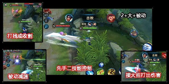 这是蹲草丛时所用,在二技能控住目标之后直接接大招可以打足大招伤害,而在控制过后便可以利用被动的减速来牵制敌人让其难以逃脱,而如果对方想要反打也会因为被减速而难以靠近,即使此时敌人以位移技能强行逼近橘右京也能利用一技能再次与之拉开距离;