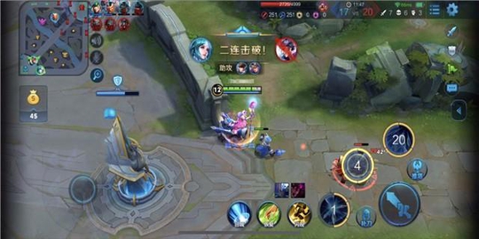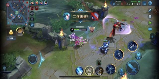 当敌方刘邦被我们控制住时,我们直接释放大招,而此时的钟馗大招处于冷却状态,并没有其余的控制技能了,因此没有办法打断我们王昭君的大招,因此只能选择在原地抗着我们的大招硬打,或者选择撤退。而图中的钟馗选择原地抗着我们的大招硬打,当敌方刘邦被我们成功击杀之后,钟馗血量也严重不足时,我们可以配合一技能将其击杀,最后完成双杀。