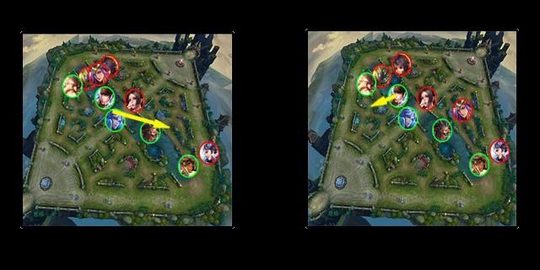 赵云大招要做到最大收益除了要做到精确命中之外还得能大中对手的关键位置,上面的两种方法是在有足够的时间精准计算的情况下所用,然而当敌方脆皮突然走位失误而给赵云捕捉到一个收割击杀的最佳时机之时便需要他掌握时机而秒放大招,此时在必要的情况下可以先用一技能进一步拉近与目标的距离,出于自然反映,对手会下意识的直接后撤,而因为赵云大招距离比闪现等常规位移要远,所以此时如果敌方交出位移则刚好落在赵云的大招范围里,而如果其并没有交位移逃跑那么则可以视情况先用一二技能试探消耗逼出对方的位移或者直接预判大招一套带走。