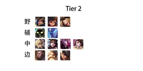 打野: T2打野是一些善于追击的英雄。但追击意味着局势生变的概率更大。