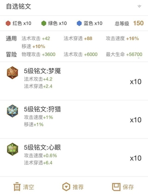 经常看我文章的玩家一般都知道,我的法师一般首选肯定是法穿了,其次就是移动速度,小乔比起一般法师来更适合移动速度这项属性,再次就是法强等其他的法师属性了,所以小编推荐的铭文是红色梦魇、蓝色狩猎、绿色心眼,这样一套铭文走下来法穿足够,而且有一定的法强和移速,配合小乔的被动前期就可以在线上横行无忌了!