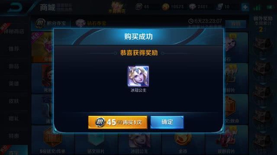 要说这个那可就厉害了!你们没有看错,仅仅抽了6次,竟然爆出了荣耀水晶,还外加一个雅典娜的冰冠公主,这运气也是非常的爆表了!虽说天美不会吃亏,但是这玩家用了200积分抽的这一发将近多少钱了?价值3000块总有了吧!