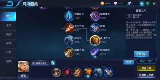 逐日之弓:增加了暴击率和攻击速度,装备被动增加普攻射程,使后羿在团战中可以更灵活的输出,往往会在追击和收割残血时产生奇效。近期装备调整之后该装备的伤害加成也是我们选择它的理由。