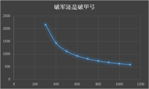 射手攻击力为900的时候,需要敌方护甲高于669时破甲弓的输出才高于破军。