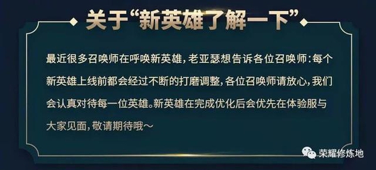 2.新英雄上线问题。官方虽然没有明说,但是去翻一翻官方的微博,热评的一定有催庞统的,庞统在体验服已经下架近300天了,上线时间暂且不知,不过这个英雄天美肯定不会放弃的,S11有望上线,技能肯定会简化,很可能有8技能变成6技能。