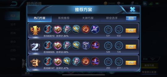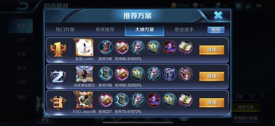 接下来我们看看大神方案,大神方案的胜率高,也相对准确,但是问题在于,你看到了大神的出装,却没有看到大神搭配的铭文。这个是问题所在。