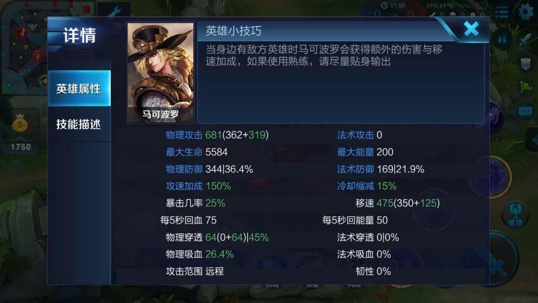 如图,马可波罗的攻速决定了一三技能的伤害,因此,只需将攻速达到150%便能打出技能最大化伤害。