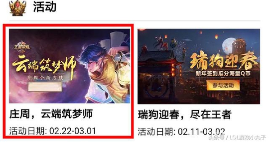 下面这个是官网的一个英雄新皮肤的配套活动,这个活动一直持续到下个月1号,大家只需要在参与对战中获得三个击杀和分享好友,那么就有两次抽取达摩永久皮肤大发明家的机会,除此之外也能通过奖池获得如黄忠、鬼谷子和东皇太一体验卡等奖励!