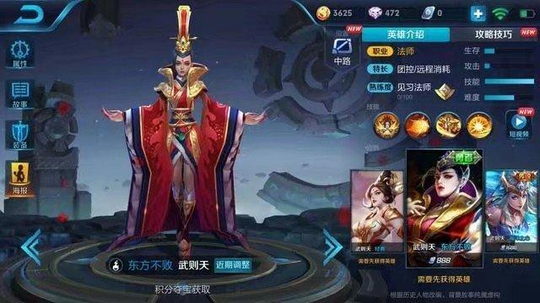 女帝是所有英雄中最难获得的一位英雄,不得不说人民币英雄天美时很照顾的,武则天在本赛季再度加强,伤害更高,一个有意识的武则天在战场上是没有能抑制的了的,太强了。有控制有伤害,大招把控好就是三杀,四杀甚至五杀。技能冷却时间短,对线能力又很强。除了得花钱难以获得,几个英雄真的很给力!