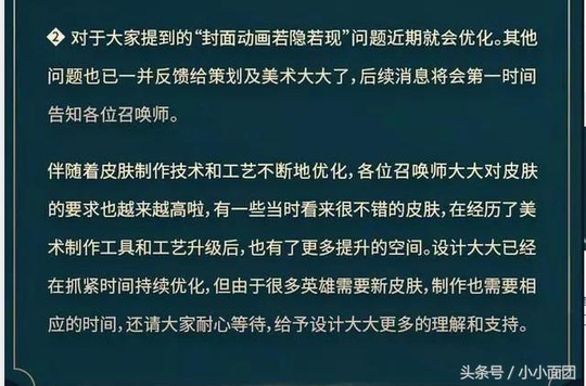 还有对封面的动画效果也会进行优化,而未来会有更多皮肤进行优化升级,希望能不止优化传说级的,那些勇者的或者白板的也都喜欢能做一些优化特别是像孙尚香的水果甜心那么贵特效那么一般。