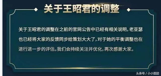 还有一个就是王昭君了,王昭君因为大招技能已经做了改版,而平衡调整也在评估中,后续王昭君还是会继续优化的。
