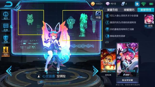 而第四款呢是安其拉刚出的这款心灵骇客皮肤,我们知道这款皮肤在王者荣耀中也是极具科技风的,安琪拉看上去也是非常帅气,而她的屏幕上呢也是画着亚瑟,不过左边这个是啥玩意儿呢?