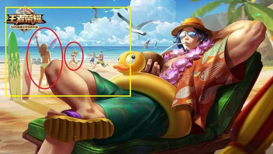 接下来呢就是项羽的这款泳装皮肤了,但是仔细看的话会注意到背景中还是有很多的其它穿着泳装的英雄,而这两位女生又是谁呢?看上去也不像是钟无艳和小乔啊,难道还要出新皮肤吗