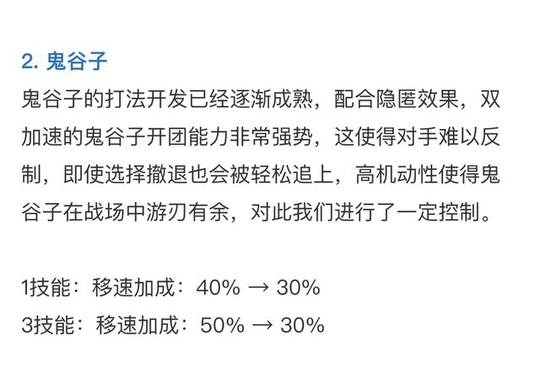 第二个就是鬼谷子了,鬼谷子目前表现的强度并不高,但是不知道哪里得罪天美了,赖以生存的移速加成被大削,想要再愉快抓人怕是梦了。