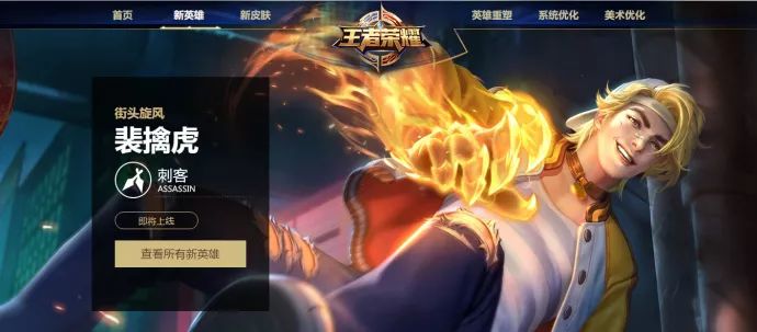 据说裴擒虎会在 2月28日 上线,那这次应该是虎子上线前的最后一次调整了。和之前的新英雄一样,裴擒虎售价13888金币,而他的新皮肤也正式定名为 街头旋风 。