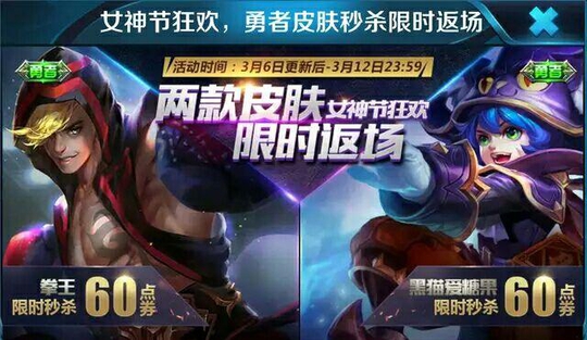 春节活动已经接近尾声了,在官方预告的元宵节活动中并没有说返场6元皮肤的消息。但是按照天美的圈钱计划,一定少不了这种特价皮肤,上次返场了荆轲的致命风华。下周女神节(3月8日)又会有促销活动,目前只可能返场六元皮肤。会从达摩-拳皇,李元芳-黑猫爱糖果,墨子-进击号中选出返场皮肤!