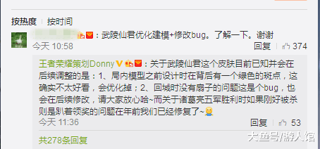 唯一回答的一个问题就是关于诸葛亮的新皮肤,武陵仙君的。看来顾客就是上帝果然是一个真理,但是前提是你要充值买个皮肤哦,关于诸葛亮武陵仙君的几个bug都会做后续的修改和修复。让顾客满意嘛,不过那个在五军之战中胜利后诸葛亮趴着的图就再也看不到了。