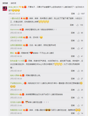 不过剑仙的微博发布没过多久,剑仙的妈妈就在微博下面留言了:“不要车子,只要你平安健康开心赶紧给我找个儿媳妇就好了!生日快乐大宝贝。”此留言没过多久,剑仙微博下就有一大批“老婆”跑了出来:“妈,您叫我?”,“阿姨你看我怎么样?”…