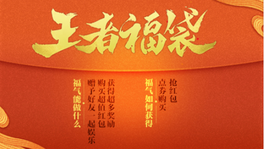 新年新福气,领取福袋过大年!王者 为 您 和好友们 精心准备的【王者福袋活动】已上线,快来 与 好友 一起共享福气 ,为新的 一年 攒足好运气 吧 !(福气 可以用来兑换各种 永久英雄 、皮肤福袋 , 也可以用来发给好友一起积攒 好运 哦~ )