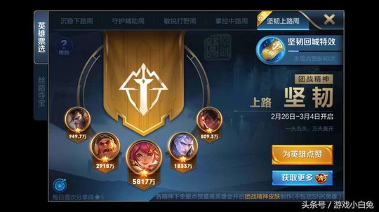 王者荣耀这周将是团战精神活动的最后一期,这才只过了半天的时间,花木兰就已经领先其他英雄很多票了,很可能这一期票数第一的英雄就是花木兰。很多玩家想要花木兰的新皮肤,但是团战精神活动别给花木兰投票,不然就看不到这款新皮肤。