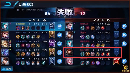 我点进去看他的历史战绩,看到自己打了一把典韦?
