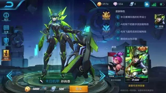 特效方面,没有什么经验的特效,唯一值得一提就是出场和回城都是以骑着摩托车的姿态来完成的,这辆摩托车也正是孙尚香的武器弩炮,个人觉得特效还需要优化。