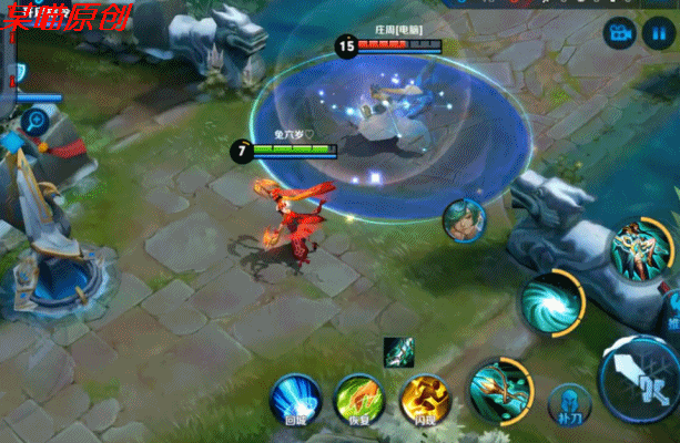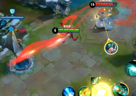 这个技巧是利用大招给予敌方眩晕并减速,然后立刻以闪现继续拉开距离,在碰到孙悟空和雅典娜这种有位移加上强化普攻位移的英雄时有比较好的效果,可以避开对方的追击。