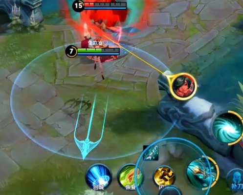 这个操作的技巧在于释放闪现的瞬间,完成返向闪现,例如敌方是在我们的上方时释放大招,那么闪现方向就与位移方向相反,需要向下拖动闪现。