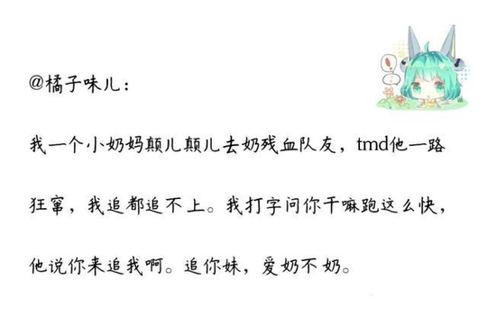 那就是队友里有鲁班,因为他的步伐我能跟得上,而且他需要我,让我没有被抛弃的感觉!