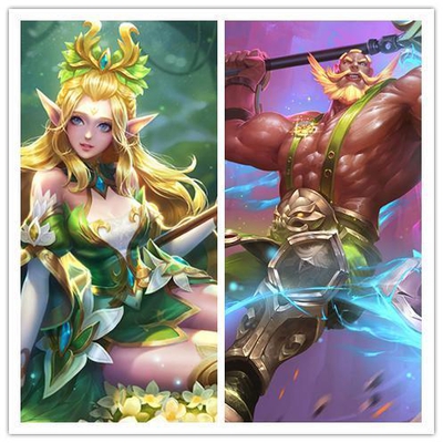 其实很不想让王昭君和程咬金组成cp的,没办法谁叫王昭君的精灵公主和程咬金的爱与正义颜色那么搭配呢,两个都是绿色系,不过程咬金耐打在峡谷里确实可以很好的照顾好王昭君的。