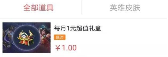 第三个礼盒:需要去掌上道具城里面,找到王者荣耀中的全部道具,这里又有一个1元超值礼盒,直接购买就获得了第三个1元超值礼盒。