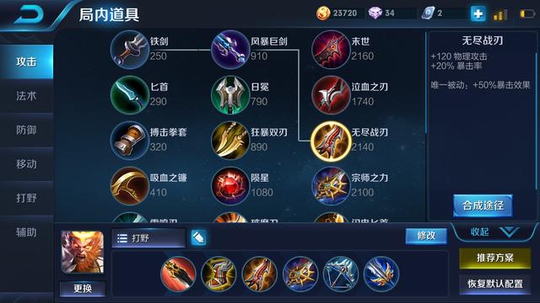 如果换成10个狩猎,一旦到了中后期,就必须买一件 吸血刀 了,而我们知道,吸血刀最重要作用,就是提高英雄续航能力。
