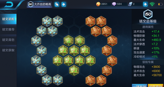 如果己方输出很足,同时敌方又有猴子或阿珂的话,建议用第二套铭文:10猎狩 2献祭6虚空2霸者 3梦魇7宿命。大乔不存在续航问题,所以猎狩取代调和;另外5%冷却是必需的;第二套铭文卡17%攻速阀值。