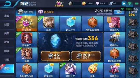 最近这个积分夺宝打折可以说是非常频繁了,毕竟荣耀商店新增了星空梦想这款传说皮肤,而且商店中的两款史诗皮肤即将优化,成为尊贵的荣耀典藏皮肤,所以趁节日出点促销活动,刺激一下消费也是可以理解的。唯一不开心的是这年头武则天越来越多,仙女我已经不止一次排位被人抢武则天了,难道这货已经成大白菜了?
