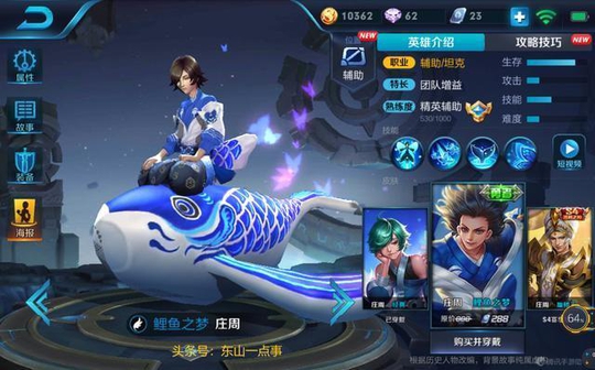 庄周是一个辅助型坦克,他的最大特点是可以解控,作为神级技能的拥有者,缺点很明显,没硬控没伤害,关键出肉的还没多少,多数是半肉法强型,在如今节奏飞快,肉坦横行的时候,庄周的强度还是不够